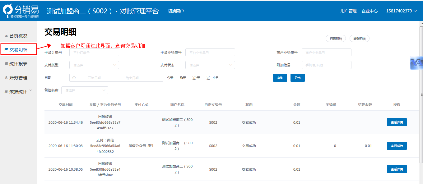 尊敬的各加盟商客户:为方便各加盟客户更方便简捷核对已支付的货款,特批量根据各加盟客户预留在公司的手机号以客户为单位开通民生《分销易》账户,开通后“分销易”将通过短信形式通知各加盟客户账号已开通。凡通过2B平台“民生银行预下单支付”端口支付的货款和通过登录“分销易”账号支付的货款均可以在“民生分销易”账户查询付款明细,“分销易”账户介绍及具体操作指引如下: