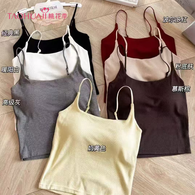 410624基础时尚磨毛带杯吊带背心