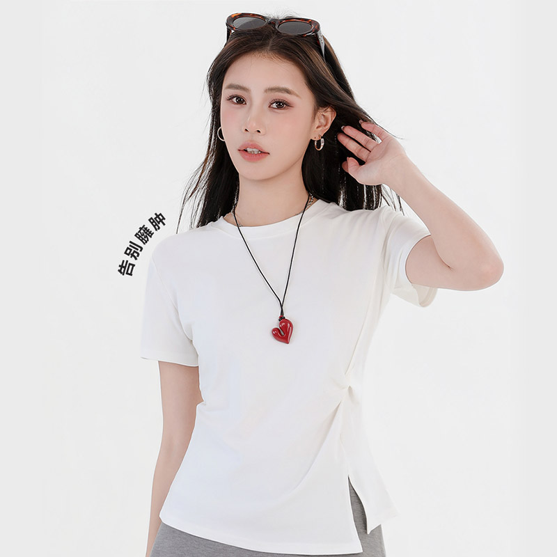 Z00123新款不规则褶皱显瘦正肩短袖(人棉)