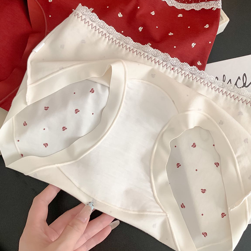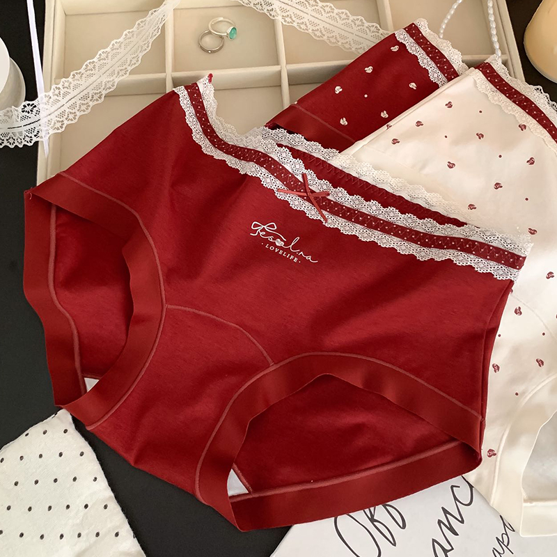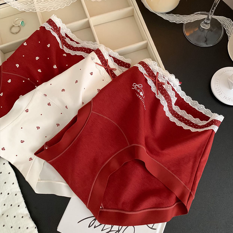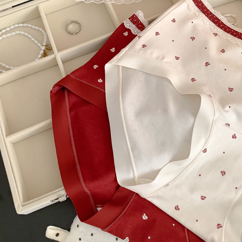 354523法式浪漫车厘子红蚕丝底裆中腰中版女士内裤