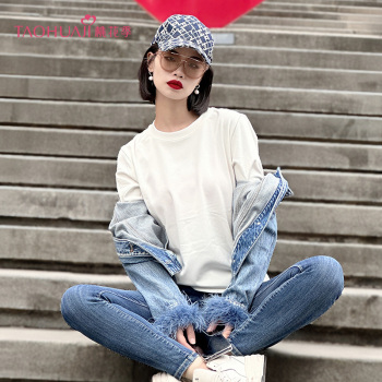 410618天丝竹棉螺纹磨毛带杯单件上衣